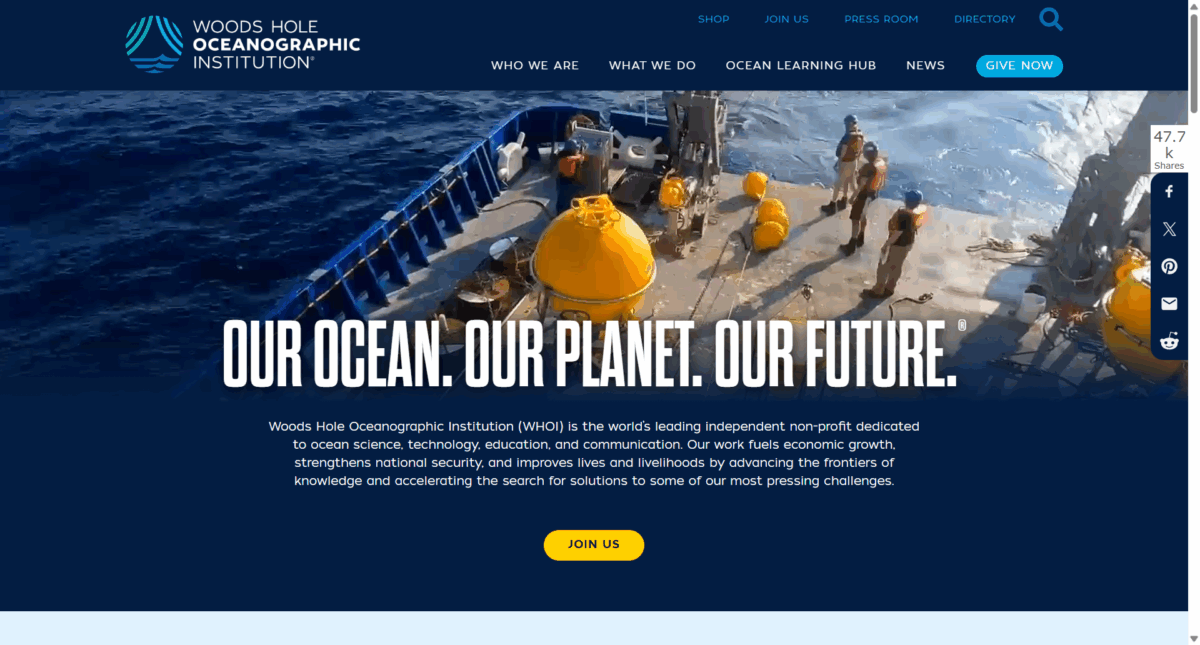 Woods Hole Oceanographic Institute (WHOI) is a private, non-profit research and higher education institution dedicated to advancing the understanding of marine science and engineering. With a deep commitment to exploring the complexities of the ocean and its interconnections with the Earth system, WHOI integrates cutting-edge research, innovative engineering, and educational excellence. WHOI’s mission is to advance knowledge of the ocean and its connection with the Earth system through science, engineering, and education, and to apply this knowledge to address pressing societal challenges.